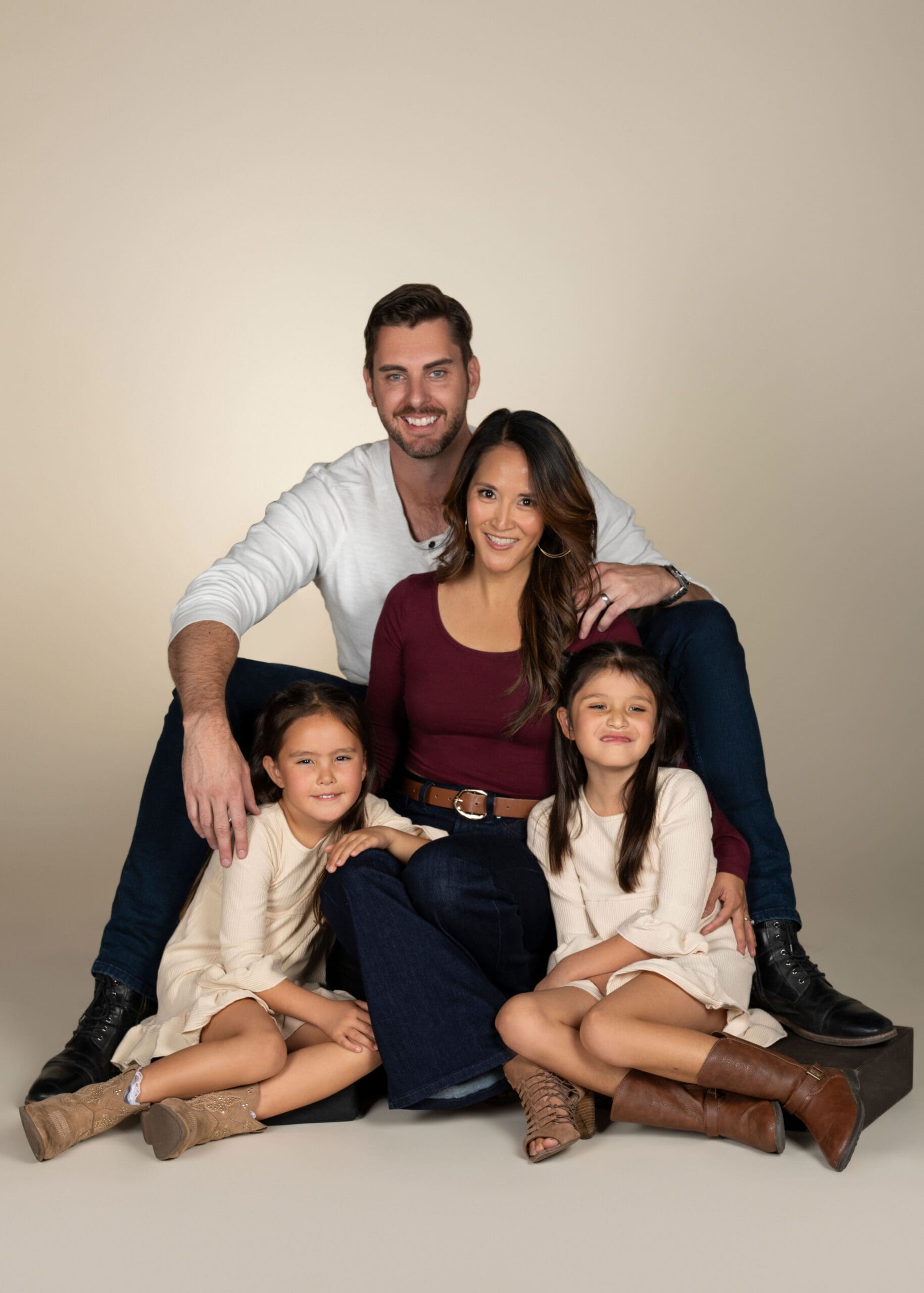 Studio family portrait sessions are a great way to avoid unpredictable weather and enjoy the comfort of being indoors, all while getting beautiful modern portraits, showcasing individual personalities.
